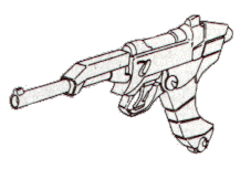 As materials technologies continued to develop, it became possible to produce a ceramic-metal composite pistol. The advantage of this technology was that it allowed the development of weapons that could not corrode, and were lighter than their traditional counterparts, but had all the strength of steel. The first service weapon built with this technology was the M-42. Firing a heavy armor-piercing .50CAP (Composite Automatic Pistol) round, and employing an internal hammerless action and an advanced roller-mounted barrel and delayed blowback slide for excellent recoil compensation, this weapon was immediately acquired by all branches of the Southern Cross, and the GMP's Enforcement Corps. Though the Weasel and Mesa Eagle continued to be used, especially in urban environments and training, the all-weather nature of the M-42 caused it to be accepted no later than 2027 as the standard field sidearm of most branches of the military. The M-42 was generally reliable, though some of the early models were machined improperly, leading to a slide that would jam shut. This problem was the only blight on an otherwise fine gun.